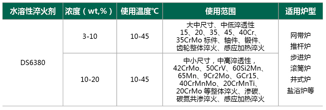 DS6380水溶性淬火液是一種基于聚烷撐二醇(PAG)等有機(jī)聚合物與功能助劑配制的水基淬火介質(zhì),具備逆溶性、不燃等特性,可通過調(diào)整濃度精準(zhǔn)控制冷卻速度,適用于碳鋼、合金鋼、鑄鐵等材料的淬火工藝。